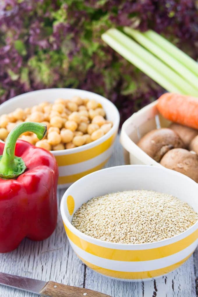 - Cook the quinoa according to the instructions on the package. Use vegetable broth instead of water. Set aside.