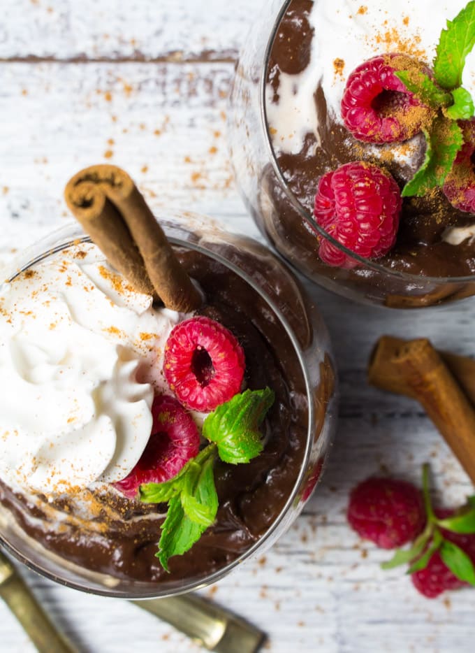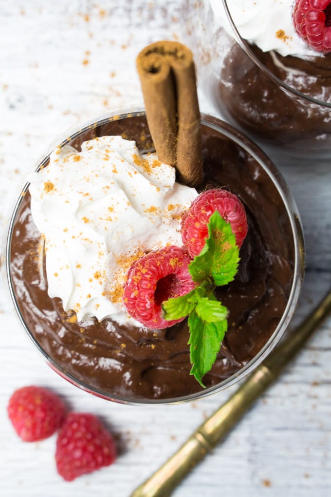 Ever since I first tried avocado chocolate pudding, I absolutely loved it! I was so surprised that you can’t even taste the avocados the slightest bit. I really does taste like regular chocolate pudding only it’s so much healthier! We usually eat it with some fresh berries and coconut cream, but this time I added gingerbread spice to make it a bit more festive and special. I thought it couldn’t get better, but it really can!!