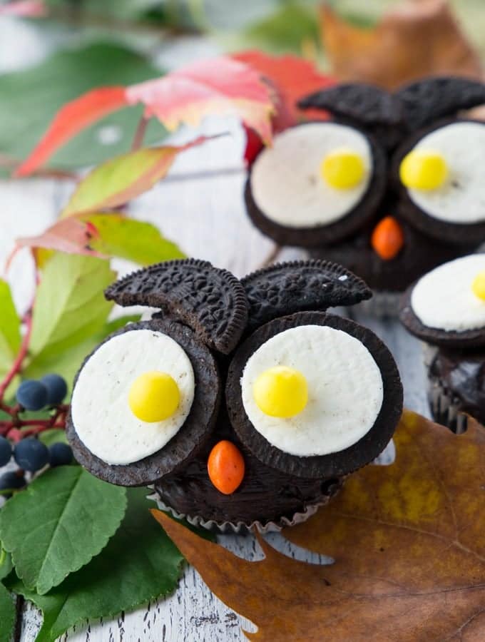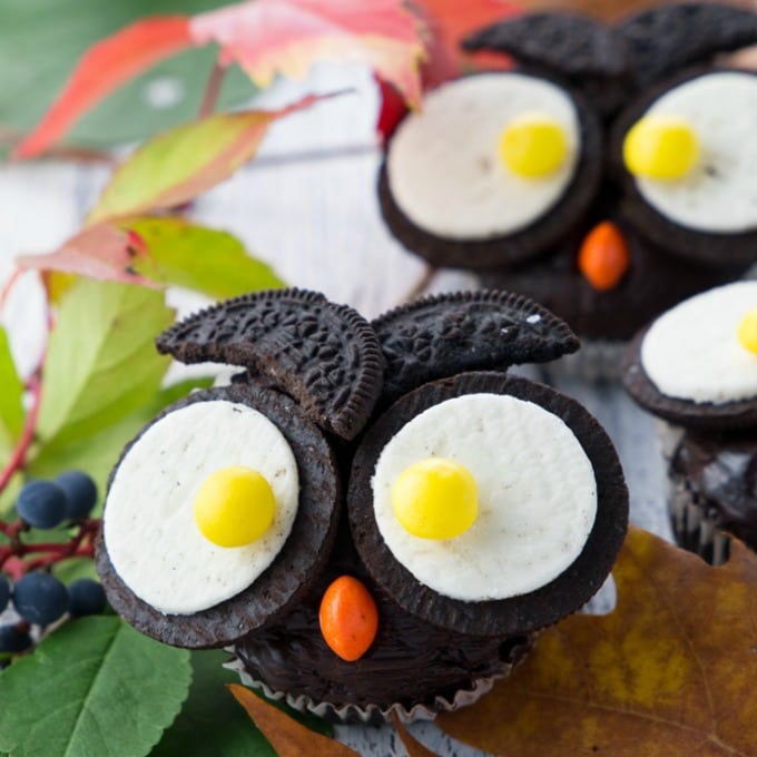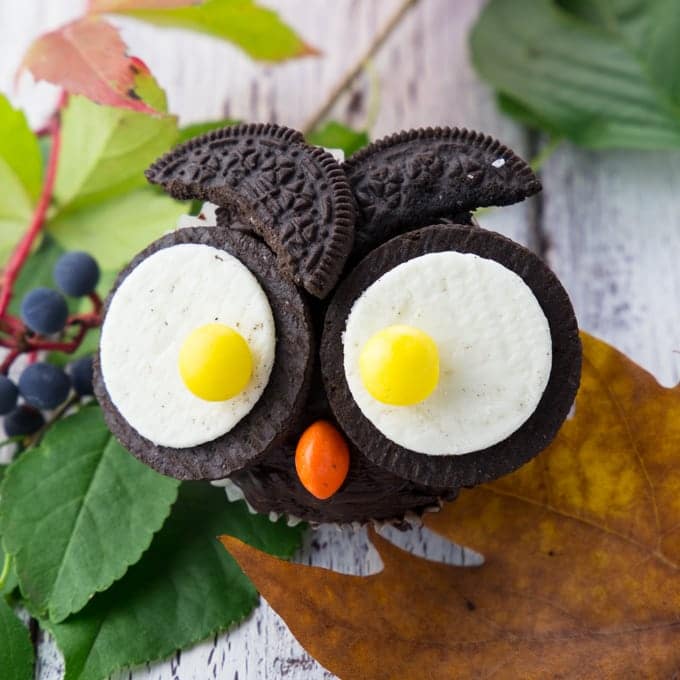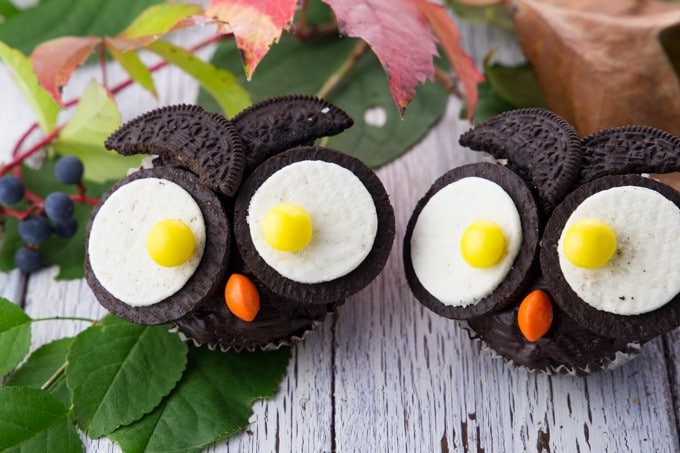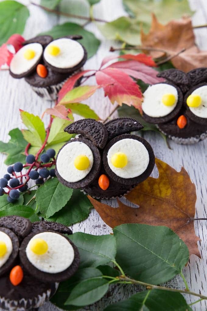 I know these Halloween owl cupcakes don’t like very scary like so many other Halloween treats. I love them as cute owls, but if you want them to look scarier, you could also use green or red skittles instead of yellow ones. This way you get evil Halloween owls. Haha!