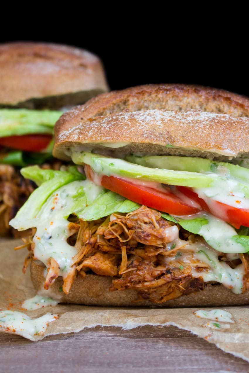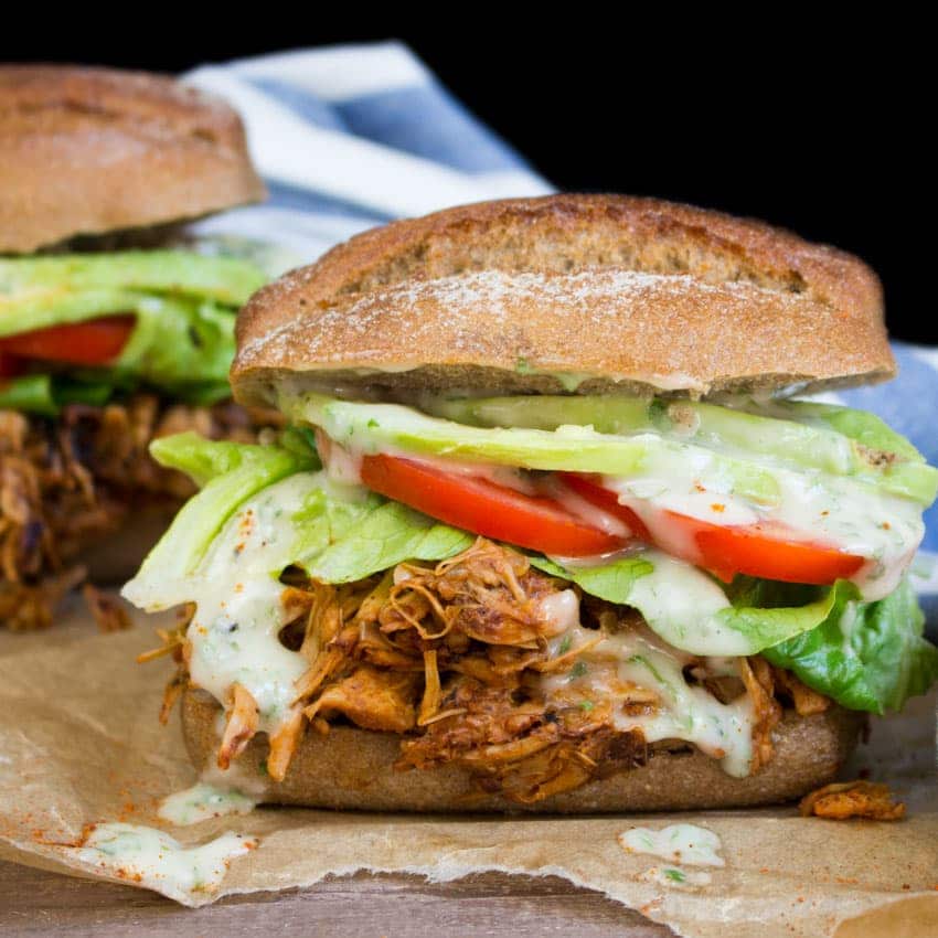 Besides, I added a pretty good amount of BBQ sauce (make sure the brand you use is vegan). While the jackfruit is cooking (this will take about 20 minutes), you’ve got enough time to prepare the vegan ranch sauce, the lettuce, the tomatoes, and the avocado. All in all, the pulled jackfruit sandwiches won’t take much longer than 30 minutes.