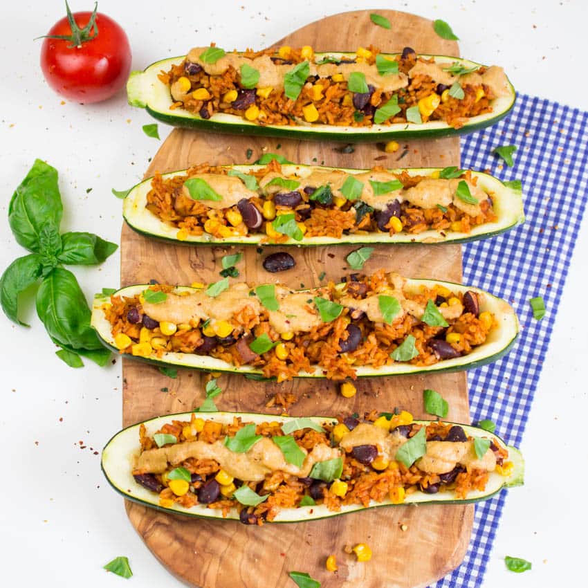 I’ve always loved stuffed veggies and I tried a lot of different versions in the last couple of weeks. Usually we have stuffed red bell peppers either with rice or with millet, but these Mexican stuffed zucchini with cashew cheese turned out so great! Plus they are super healthy and easy to make. It’s always very good to eat rice and beans in the same dish, as they together make up a complete protein, which provides all amino acids that our body can’t make on its own.
