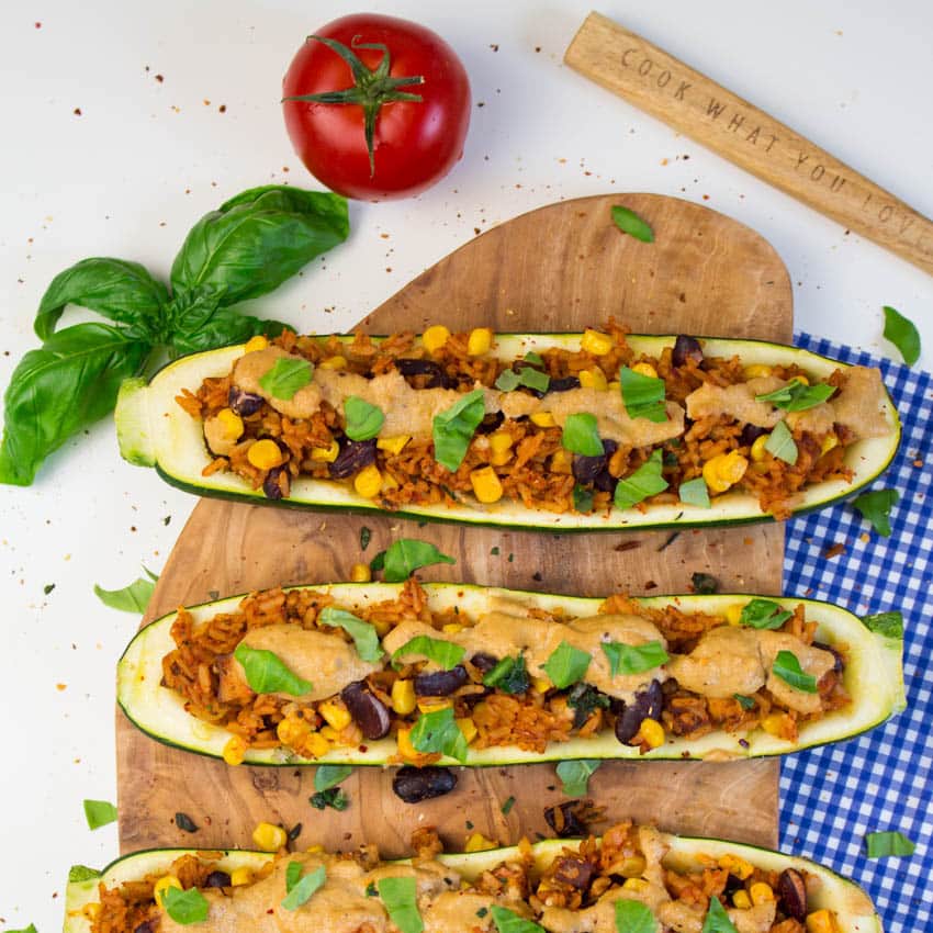 Mexican rice with kidney beans and corn? GREAT! Mexican stuffed zucchini? YES, please! Mexican stuffed zucchini with cashew cheese? OH MY GOSH, EVEN BETTER!!