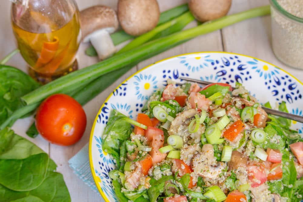 Quinoa Salad with Mushrooms and Spinach