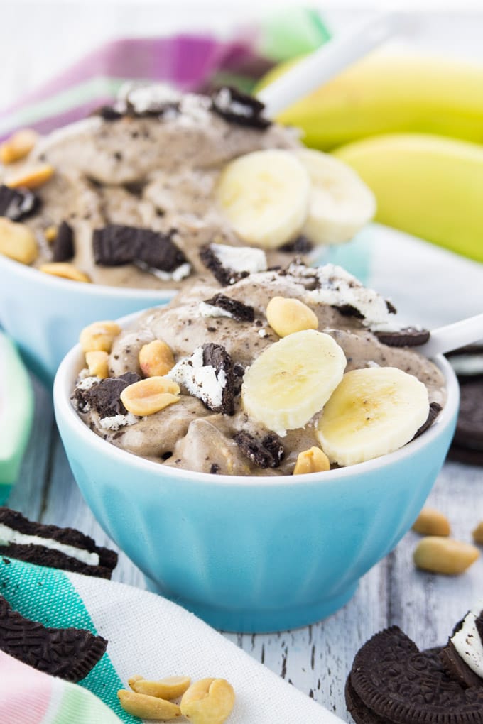 Nice cream rocks and nice cream with peanut butter and oreos in it rocks even more. I so want a bowl of that!