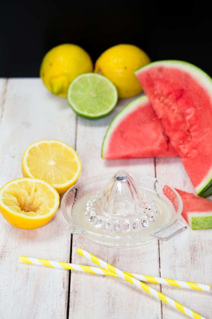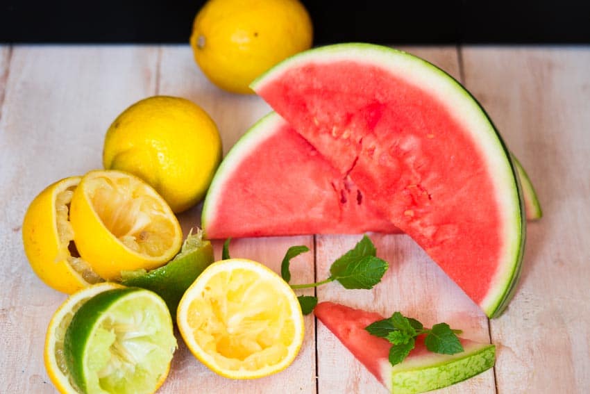 - Juice the lemons and the lime. Add the juice, water, and agave to the pureed watermelon. Blend again for a couple of seconds.