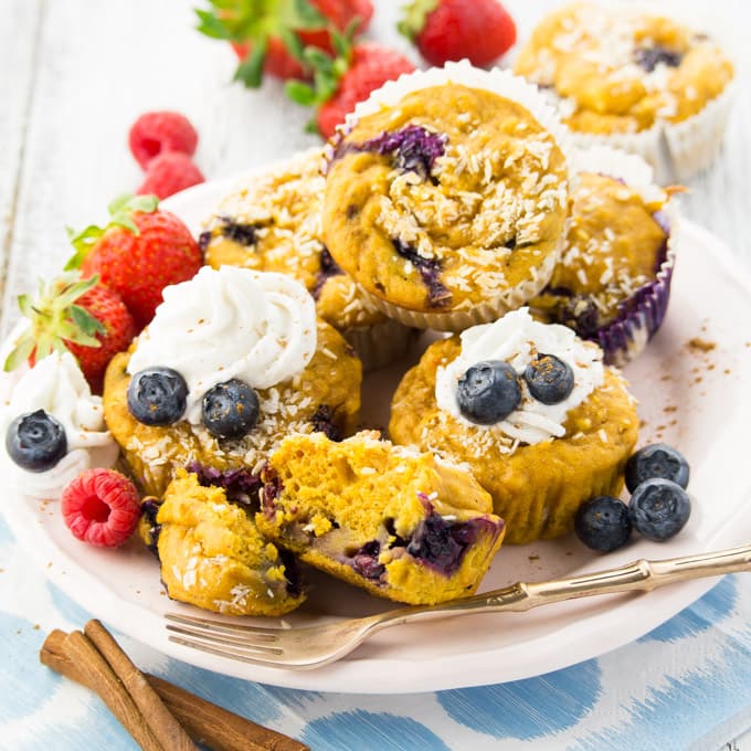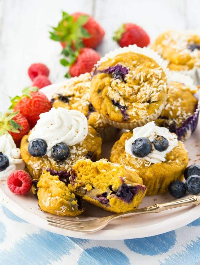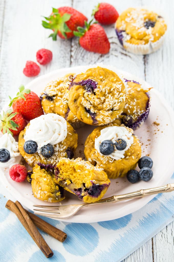 I hope you guys enjoy this recipe for sweet potato muffins with blueberries! If you give it a try, please let me know how you liked the muffins.