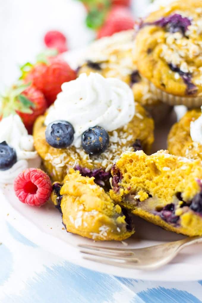- Let them cool down for about half an hour and serve them with homemade coconut whipped cream (instructions in the text above) and fresh berries. Enjoy!