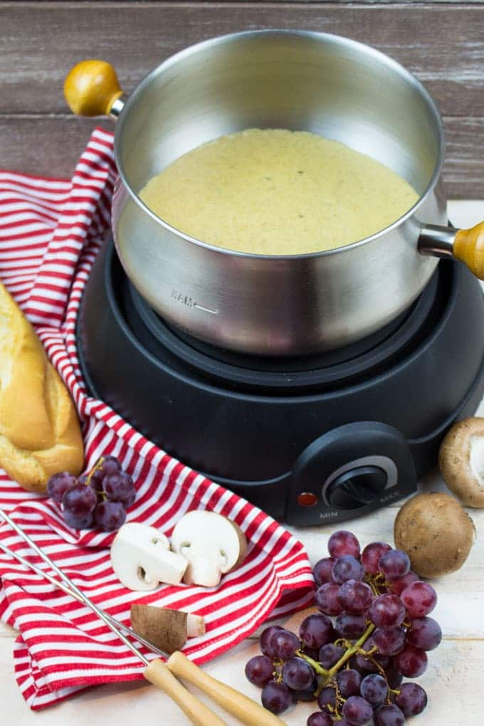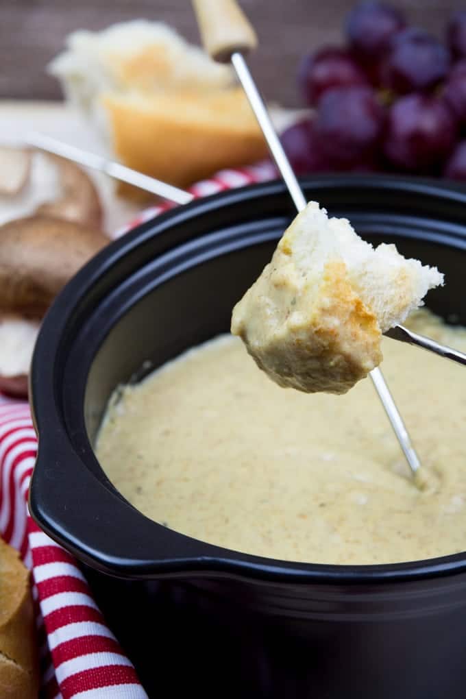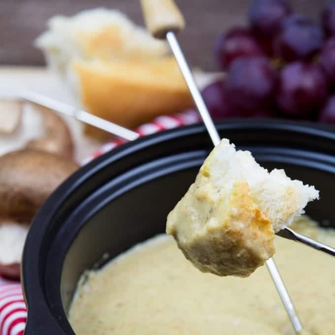 Most people only dip bread into the cheese sauce, but I also love dipping mushrooms and grapes and of course other veggies are great too.