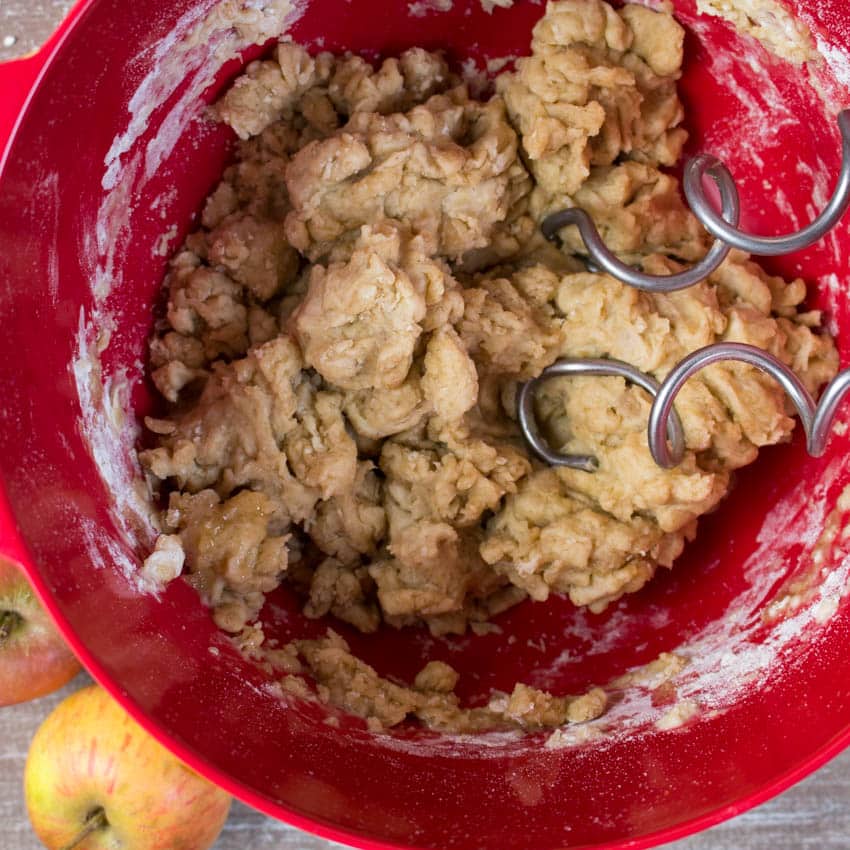 - Then knead the dough for about a minute or two. I used a hand mixer with dough hooks, but of course you can also use a classic stand mixer or just use your hands.