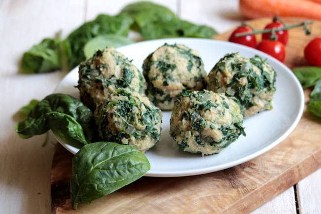 - Stir the spinach in the dumpling dough and form about 6 small balls. Cook in salted water for about 10 minutes (on very low heat).