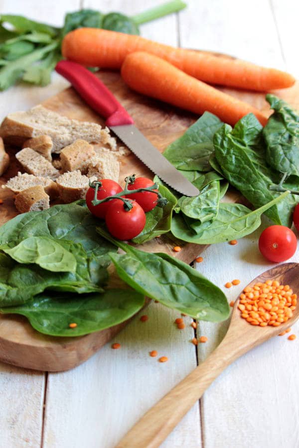 These vegan bread dumplings with spinach and lentils are the ultimate comfort food! They make a great spring recipe!