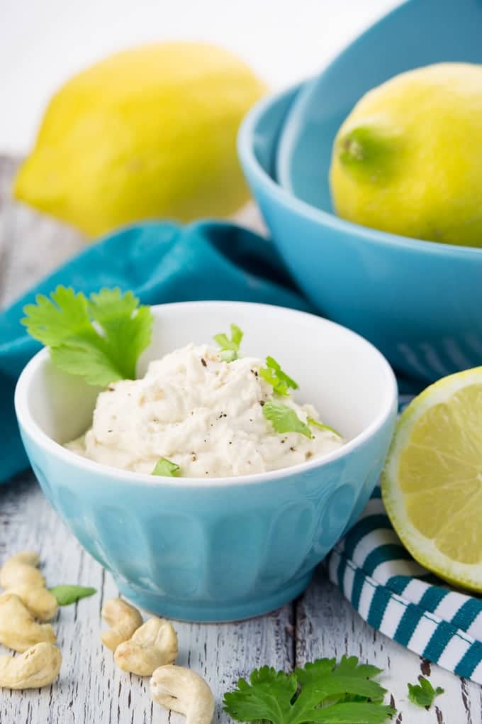 - Make the sour cream: Drain the cashews and put all ingredients in a food processor and process until smooth. Season with salt and pepper.