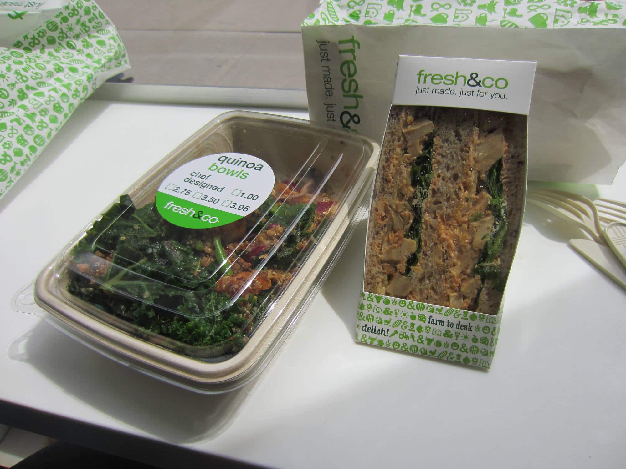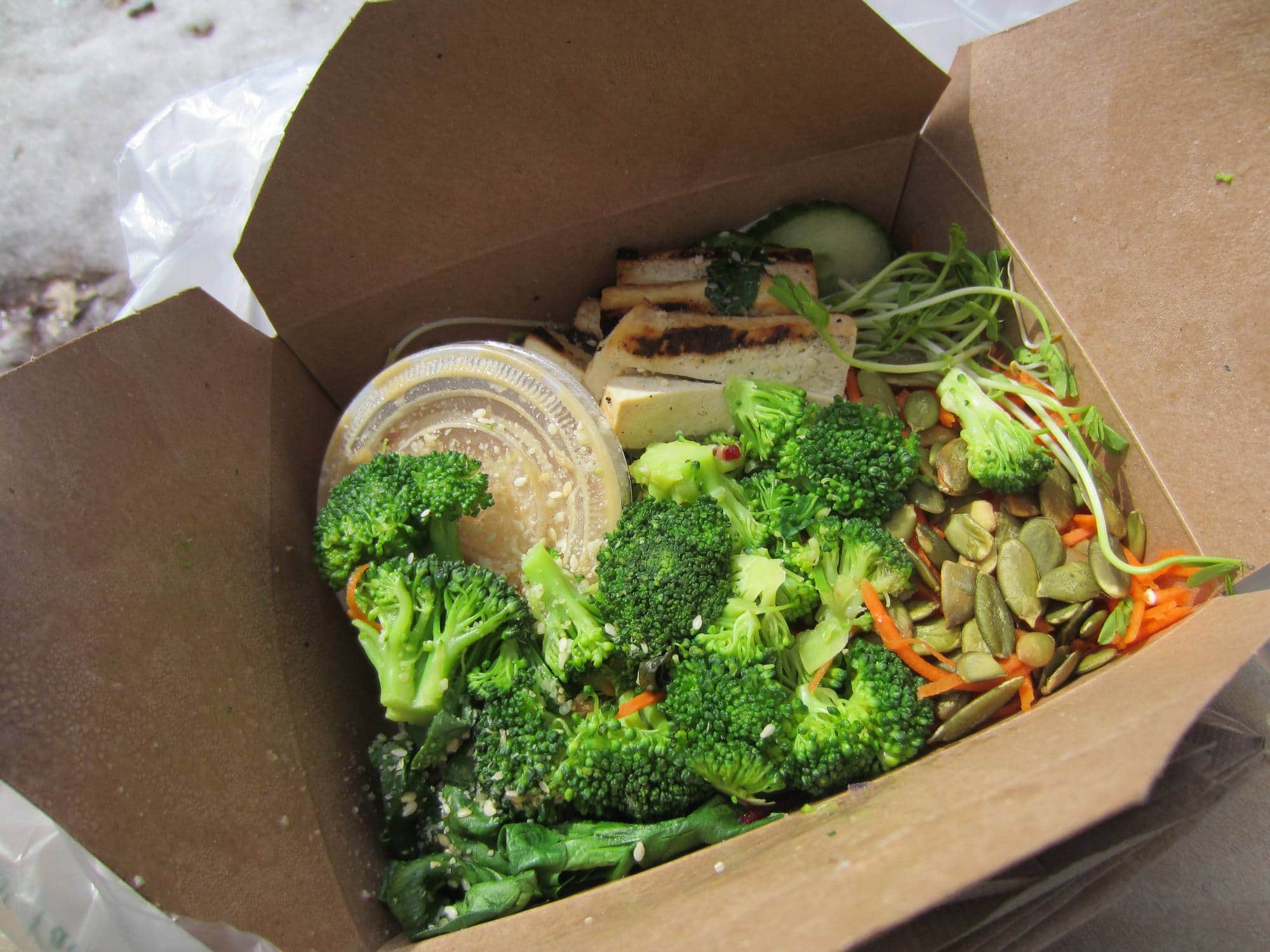 There are also many fast food restaurants that offer healthy food in New York such as fresh & co. Fresh & co has 14 locations in New York and although it is not exclusively vegetarian, there are tons of options for vegans and vegetarians. They have several quinoa bowls, sandwiches, wraps, and salads on their menu. Some of their food is also labeled as vegan like the vegan pullman sandwich, the spicy unchicken salad, and the portobello burger to name just a few vegan options. We had a quinoa bowl with kale and an unchicken sandwich and really enjoyed their food! :-)