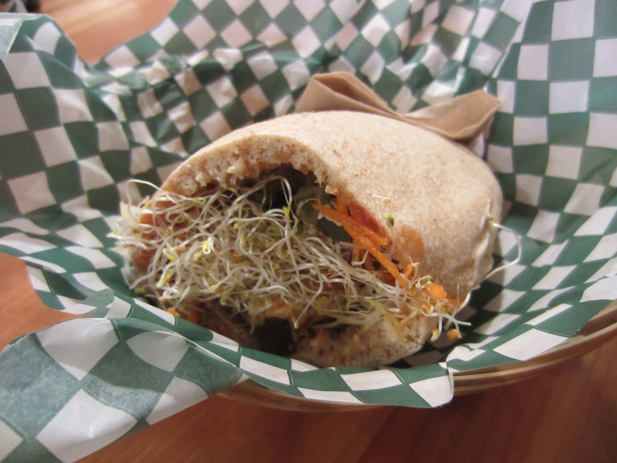 I can really recommend the fast food restaurant maoz vegetarian that does not only have six locations in New York but also one in Amsterdam, Barcelona and Paris. They offer falafel in combination with a great variety of salads and sauces. You can either get a bowl or a sandwich, which you can both fill at the salad bar, where you can find the usual salad ingredients such as lettuce, tomato, and cucumber but also couscous, salatbeet, chickpeas, coleslaw, fried broccoli and cauliflower, and hummus. Once you are done with the toppings, you can complete your meal with one of their sauces that range from yogurt, tahini, garlic sauce, or red and green chili. Unfortunately, most of their sauces are only vegetarian but the tahini sauce is vegan and is really yummy! They also offer Belgian-style fries and vegan desserts, for example rice pudding. We’ve been to their location right next to the Times Square (558 7th Ave (Corner of 40th St)) twice. You can also find them at Union Square, Greenwich Village, Upper West Side, and Central Park.